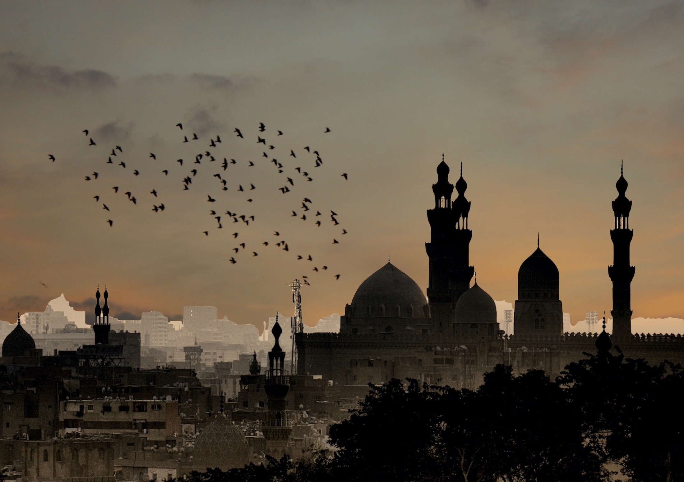 I ett annat veck i tiden klickar jag mig fram i Kairo på Google Street View och hamnar i ett foto taget i en lägenhet på Zamalek, ön mitt i Nilen där ambassaderna hyr in sig i gamla franska kolonialpalats, där ”man” kan ta en tur på galoppbanan på Gezira sportklubb, ta en drink och spela lite krocket i en park med illgrönt gräs och palmer som i Waguih Ghalis klassiker Beer in the Snooker club från 1964. Rummet på bilden renoveras och golvet är uppbrutet. Genom de stora fönstren som går från golv till tak ser jag ut över en terrass i tre väderstreck där det står smutsiga AC-apparater, säckar med skräp, en stege, omkullvälta vita plaststolar. Bortanför terrassen: träd med fläckiga löv, spruckna fasader, dammiga parabolantenner. Mitt i rummet står en man och ser ner på ett halvfärdigt parkettgolv.
