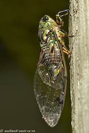 Matematikern Paul Haffner, skicklig fotograf i västra Auckland, har nyligen lagt ut en nytagen bild på en cikada (Amphipsalta Zelandica) på sin hemsida (auckland-west.co.nz). Under rådande heta högsommardagar, med inte sällan drygt 30 grader i skuggan, fylls rymden av deras ihållande svirrande som är mera öronbedövande än svenska sommarsyrsors. Fotot fick mig att ta fram David Garnetts ”The Grasshoppers Come” som jag äger i den vackra originalupplagan från 1931, med träsnitt av hans hustru Ray (som också illustrerade hans berömda ”Lady into Fox” som jag skrivit om tidigare).