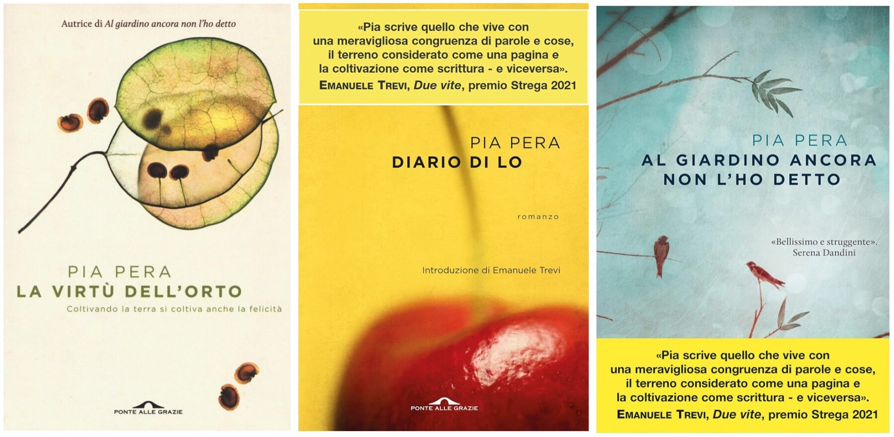 Hennes sista bok är betitlad Al giardino non l’ho ancora detto (Jag har inte berättat det för trädgården än) vilket i sig är en diktrad av Emily Dickinson för vilken trädgården, precis som för Pia Pera var fundamental som fristad och beskydd.