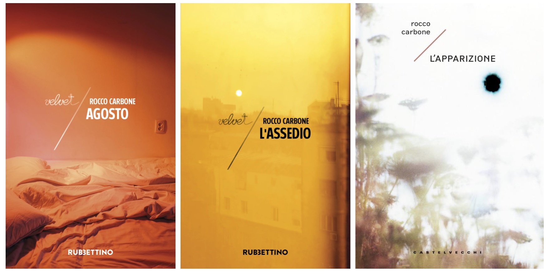 Rocco Carbone som fördjupade sig i strukturalismen, och såg ut att få en framgångsrik akademisk karriär, bestämde sig för att hoppa av densamma och enbart skriva skönlitteratur, då närmast med en botgörares iver. Han kom att skriva sju romaner varav två publicerades postumt. Hans böcker fick genomgående lysande kritik men nådde som annan ”smal” litteratur inte ut till läsarna, något som gjorde Carbone både misslynt och besviken och kom att leda till oändliga samtal med Emanuele Trevi.