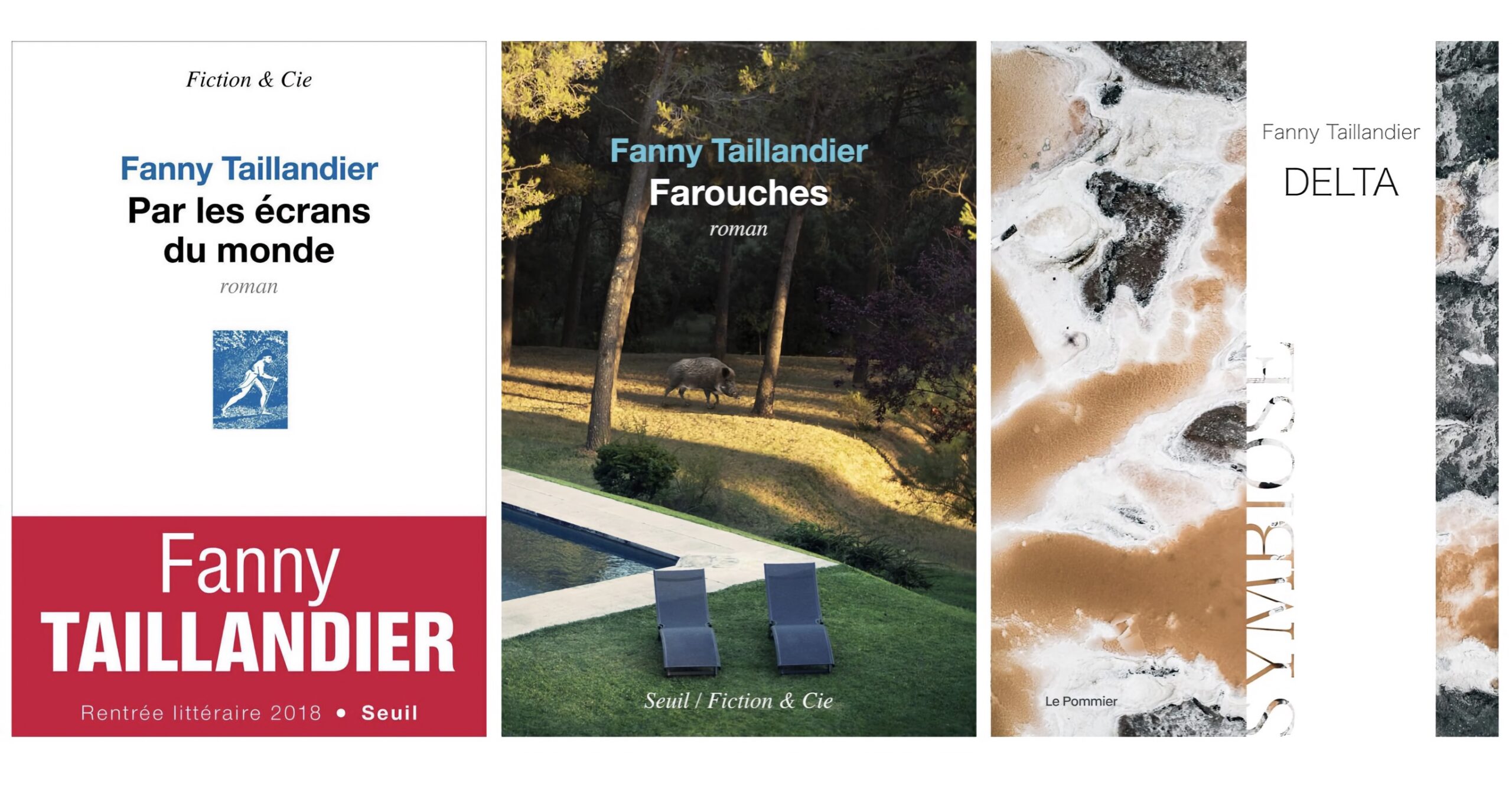 Frågor som dessa aktiveras i den franska författaren Fanny Taillandiers (f. 1986) trilogi Empire. Den inleddes med romanen Par les écrans du monde (2018), som följer några av de historier som flätas samman i det ögonblick “Twin towers” faller, om och om igen på våra skärmar. Därpå följde Farouche (2021), en genreöverskridande skräckroman om vildsvin. Trilogin avslutades med Delta (2022).