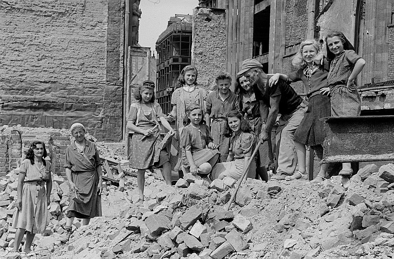 I Berlin stöter Wilder även på så kallade Trümmerfrauen, kvinnor som i långa rader samlar ihop återstoden av bombade byggnader. Hilmes förtydligar att det inte var så vanligt som många tror idag. Endast fem procent av Berlins kvinnor deltog i arbetet – och de flesta av dem hade tvingats till det, de var före detta nazistfruar, ledare av BDM (Bund Deutscher Mädchen. Hitler Jugend var till för pojkar, BDM för flickor) och liknande. Efter kriget talade man mer om Trümmerfrauen och den heroiska återuppbyggnaden, än om att det samtidigt i Berlin våldtogs omkring 110 000 kvinnor enbart de första tre månaderna efter krigsslutet, och att var femte graviditet ledde till abort. Alla dessa barn som föddes, hur blev deras liv?