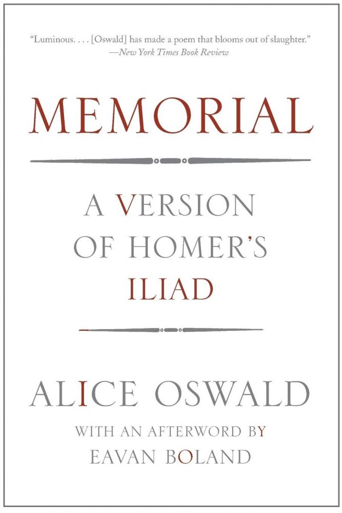 Om döden i Memorial drabbar männen i krig på slagfältet, brutalt och realistiskt, har de  stridande akajerna (grekerna) i inledningen av Homeros version av Iliaden istället drabbats av pesten. Sjukdomen tjänar därmed som upptakt till eposet, låt vara att det bara skildrar några veckor mot slutet av det Trojanska kriget, ett blodbad som egentligen lär ha pågått i tio år. Men det är först när pesten slår till och hotar grekerna, som Gudinnan åkallas och den daktyliska hexametern drar igång (”Sjung, o Gudinna, om vreden som brann hos Peliden Achilles…”).